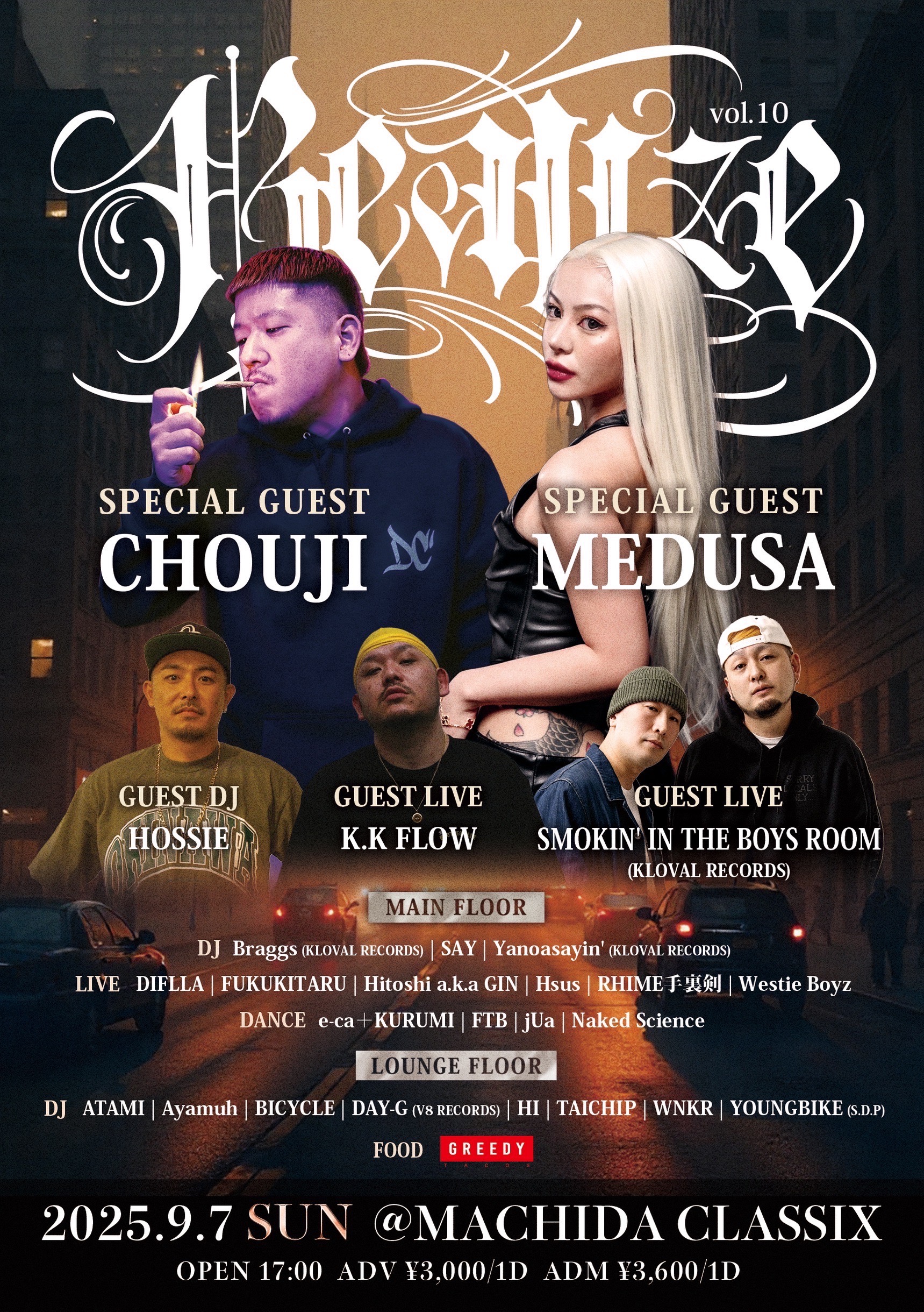 | 出演者 | 【SPECIAL GUEST】 【GUEST LIVE】 【GUEST DJ】 MAIN FLOOR 【LIVE】 【DANCE】 【FOOD】 LOUNGE FLOOR |